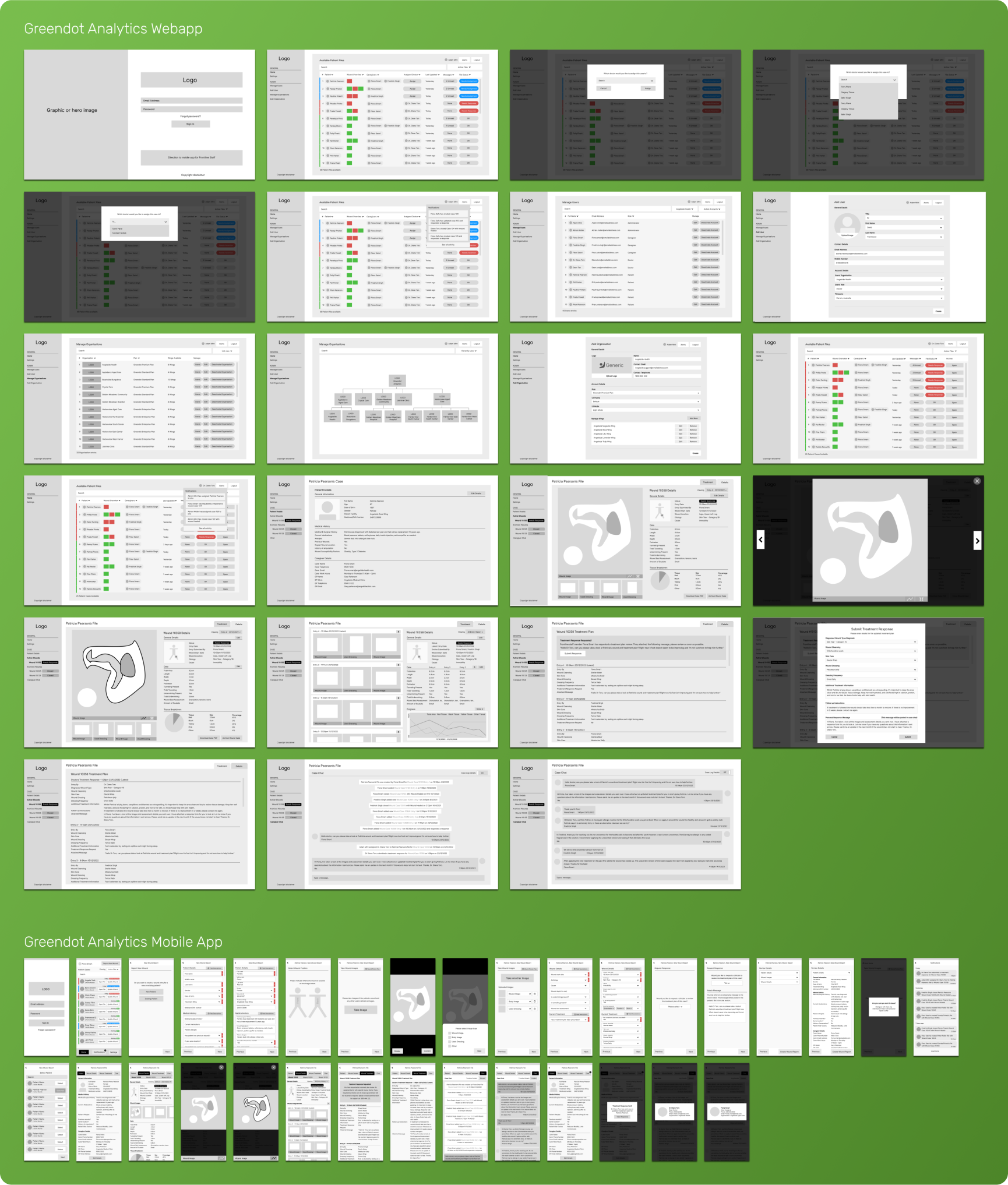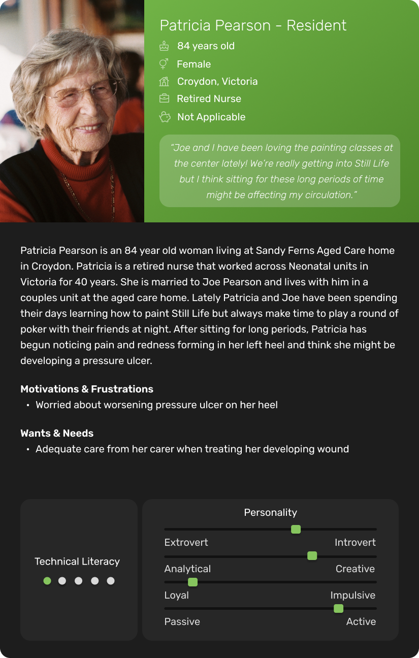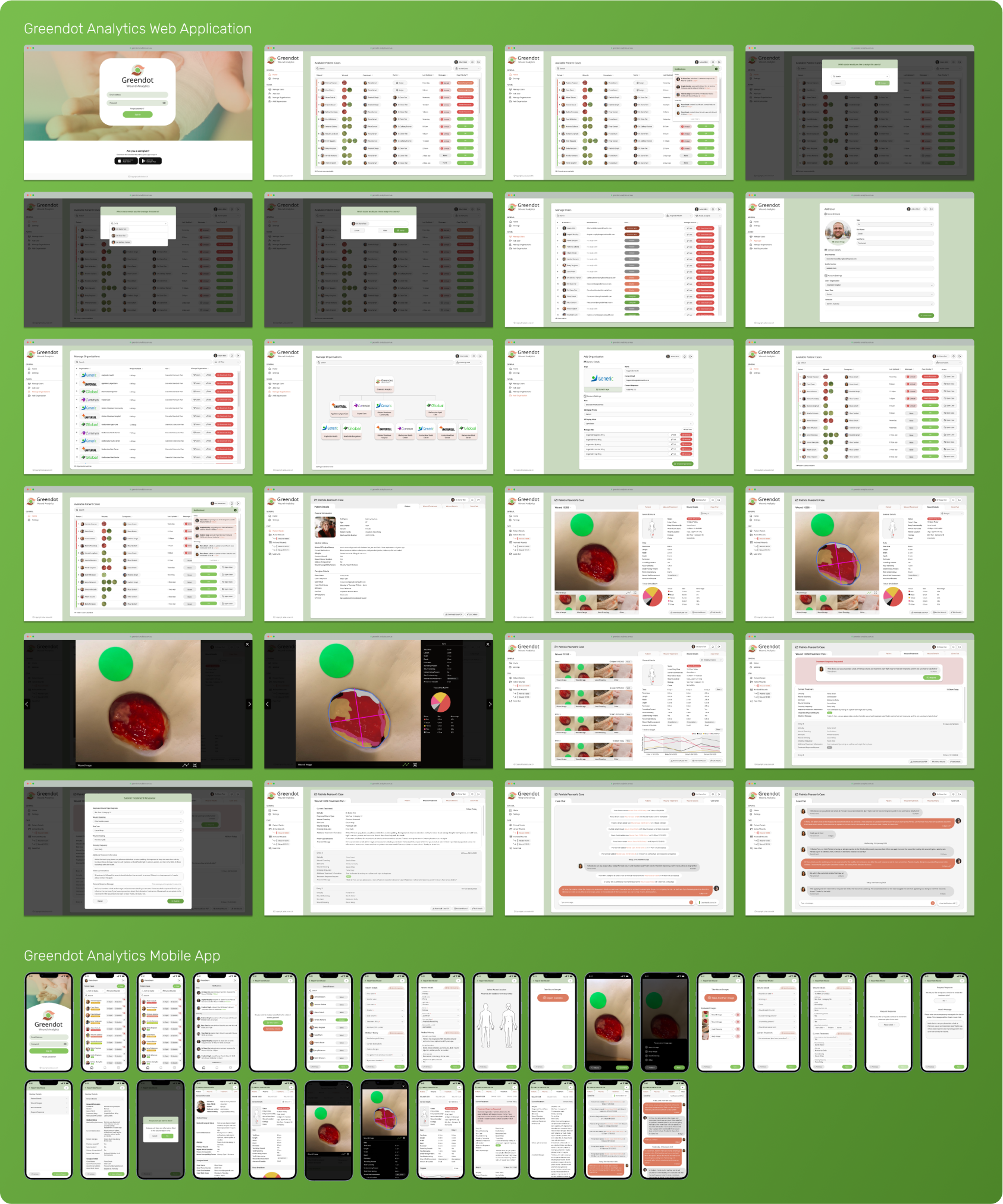 CollabCare, a Melbourne-based technology company specializing in digital health services, identified a market gap for a digital wound management solution through their previous work with aged care facilities. They called this application Greendot Analytics and envisioned a system to track, analyze, and request specialist help throughout the wound healing journey. As the product designer at the company, I was tasked with designing the solution.