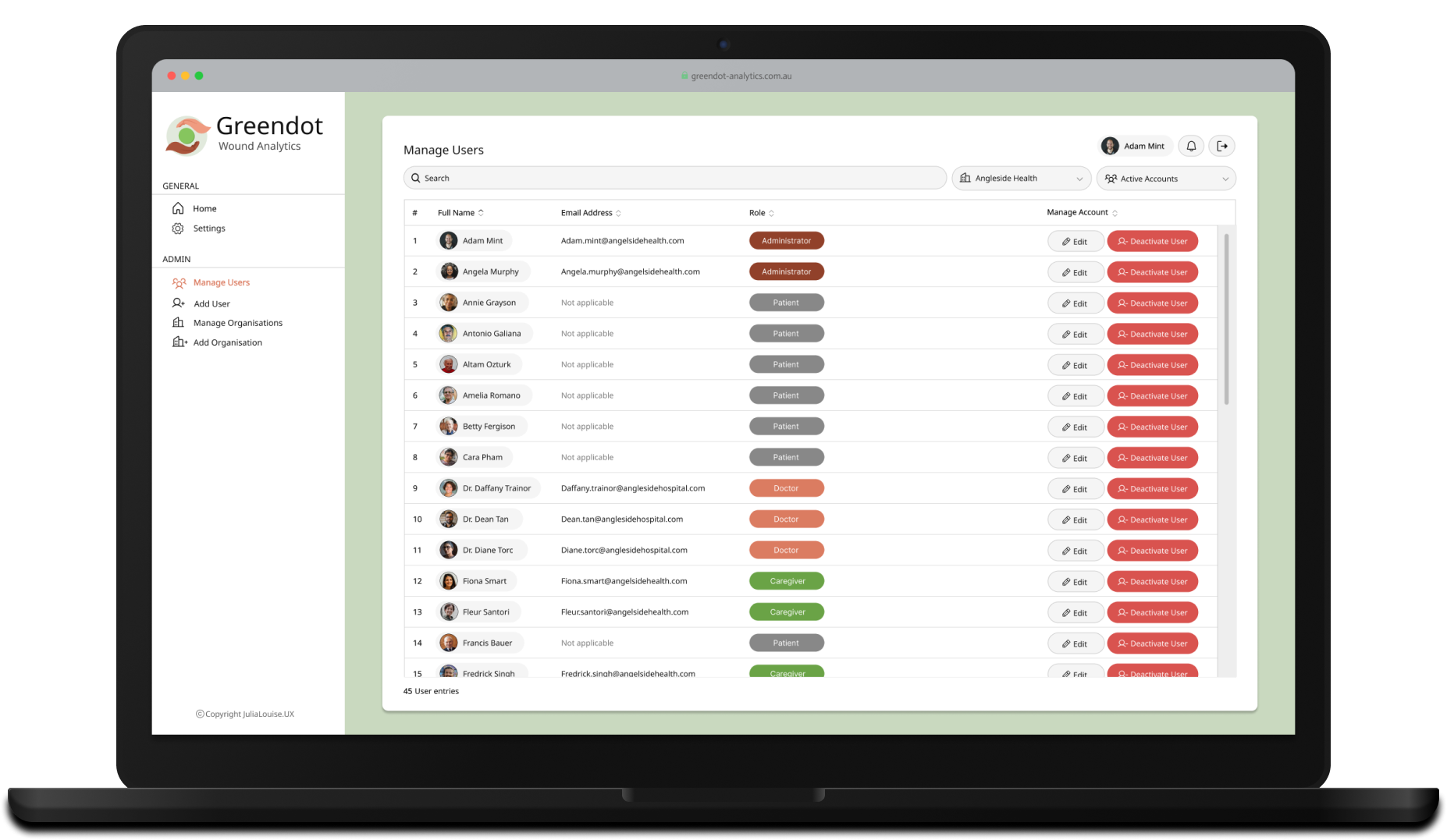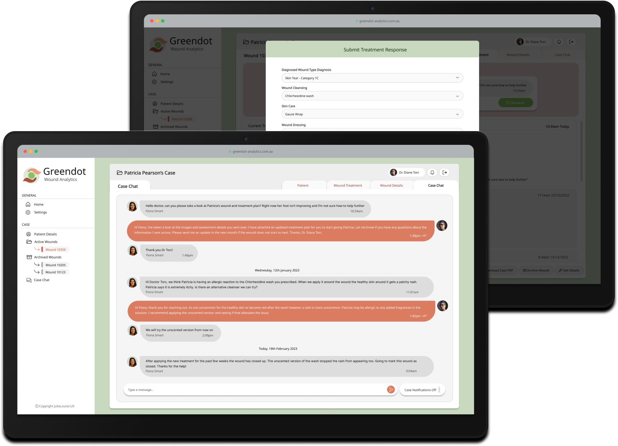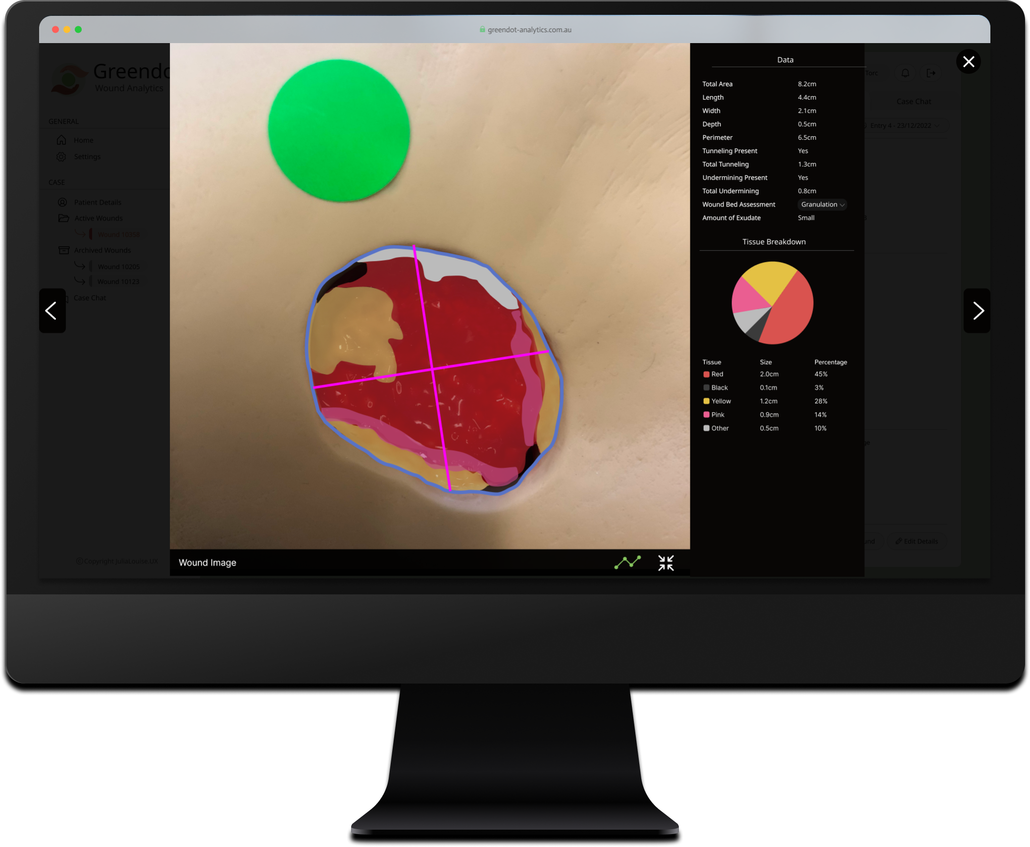 CollabCare, a Melbourne-based technology company specializing in digital health services, identified a market gap for a digital wound management solution through their previous work with aged care facilities. They called this application Greendot Analytics and envisioned a system to track, analyze, and request specialist help throughout the wound healing journey. As the product designer at the company, I was tasked with designing the solution.