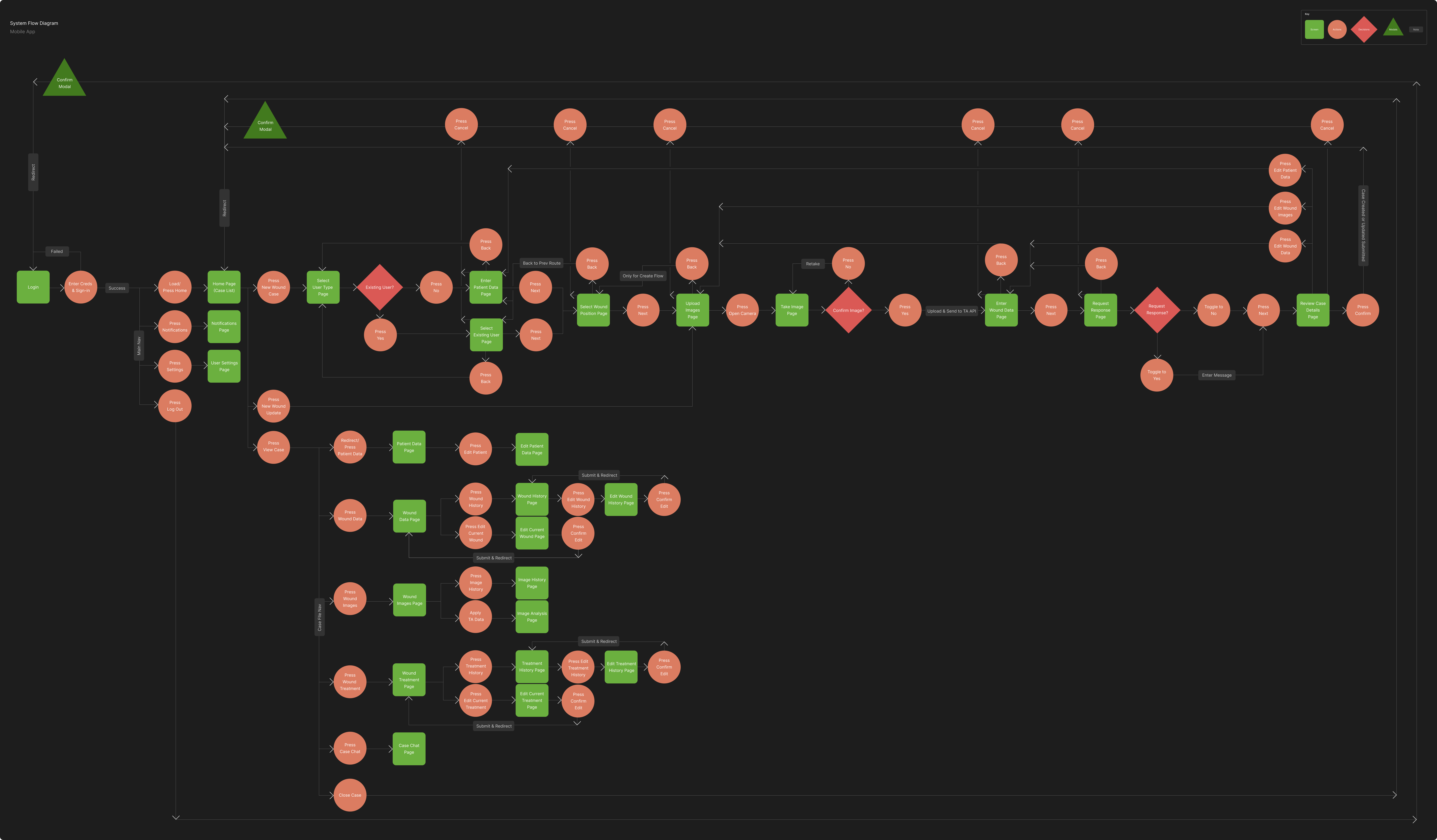 System WireflowsThis part of the design process was by far the most iterative and challenging. The collaboration sessions the Product Manager held with various stakeholders revealed conflicting priorities based on different user roles. While the web application workflow required only a few iterations, the mobile app flows - such as creating a case, updating a case, and handling deviations like requesting a response - underwent more than ten iterations. Ultimately, a flow was agreed upon after the PM presented a range of options to each stakeholder. Even so, it was acknowledged that further research and usability testing would likely be needed during the aged care center trials. The development team was advised to plan for future tweaks to the flows once the MVP version of the app was released.